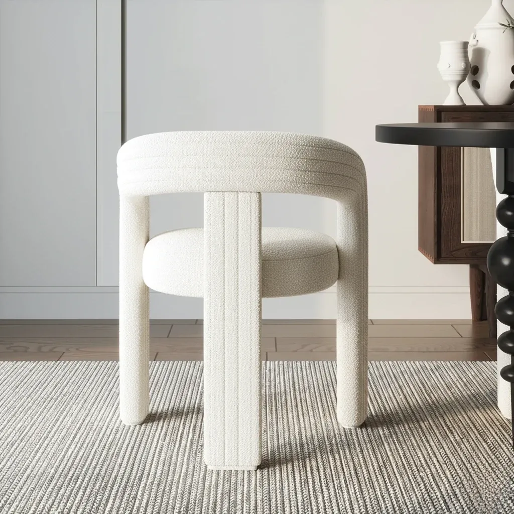 Crafted with a sturdy frame, the chair delivers durability and stability for everyday use. The sculpted backrest and padded seat offer a comfortable seating experience, making it suitable for both casual meals and formal gatherings. Whether paired with a wooden, glass, or stone dining table, the Boucle Curve Dining Chair enhances the overall look with its refined simplicity.