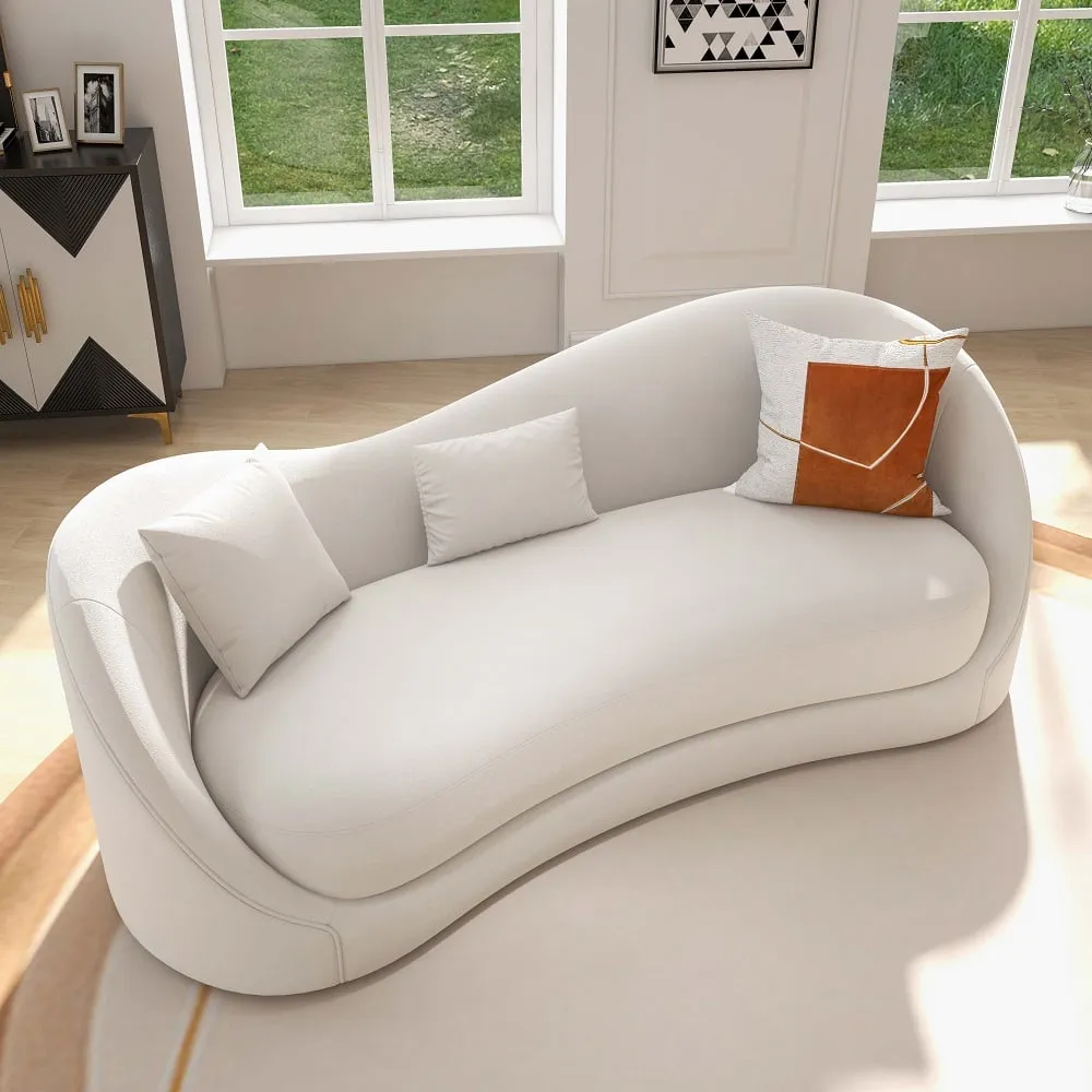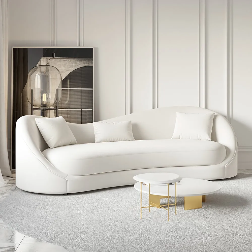 The Belgravia White Curved Sofa combines sculptural elegance with plush comfort. A British-inspired statement piece, perfect for modern interiors seeking timeless style and soft sophistication.
