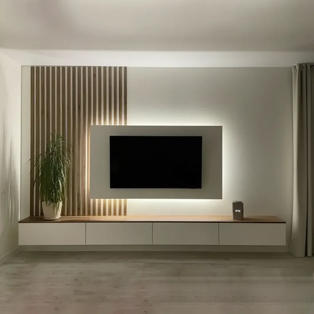 Whether finished in matte neutrals, warm wooden tones, or glossy modern hues, the Waffle Luxury TV Wall Unit can be fully customized to fit your home’s aesthetic. Optional integrated lighting adds a soft ambient glow, enhancing both the texture and atmosphere of the space.