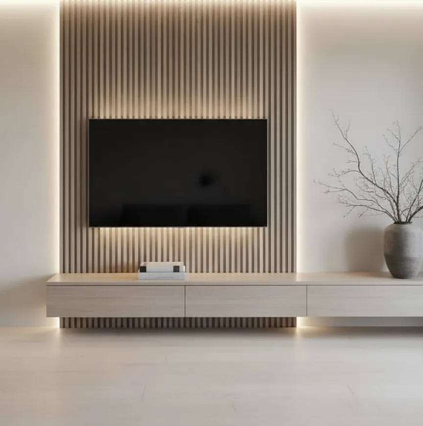 Blaze Floating TV Console – Wall-mounted entertainment unit with concealed storage and clean lines.